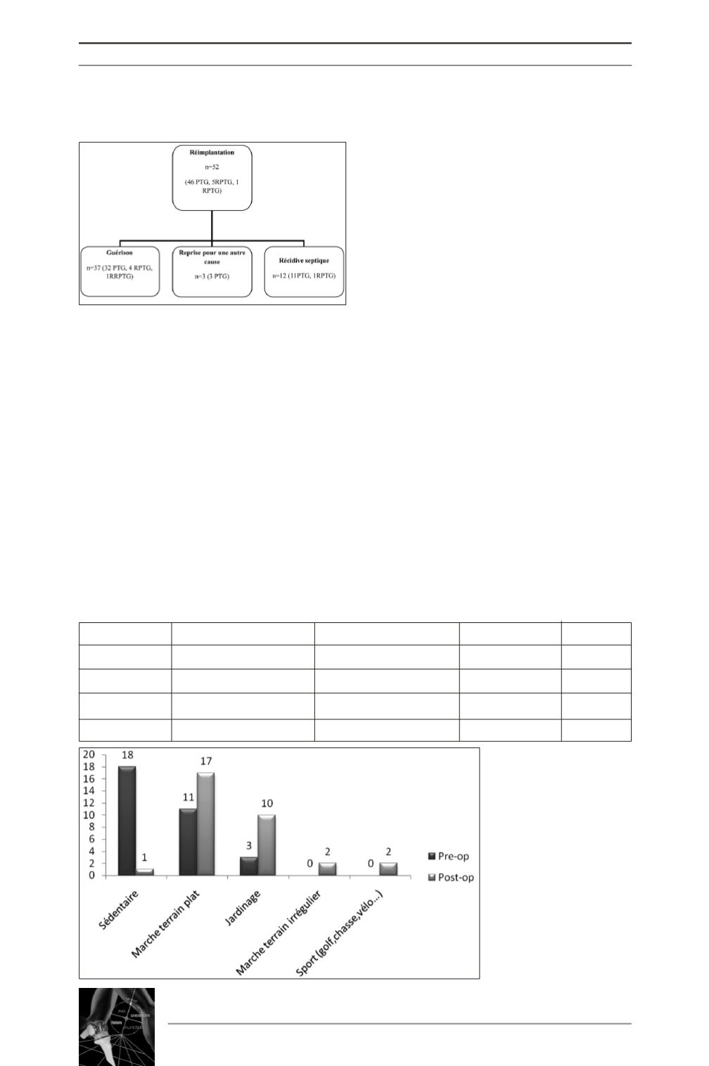 chez les 32 patients non repris du groupe PTG opéré en 2 temps