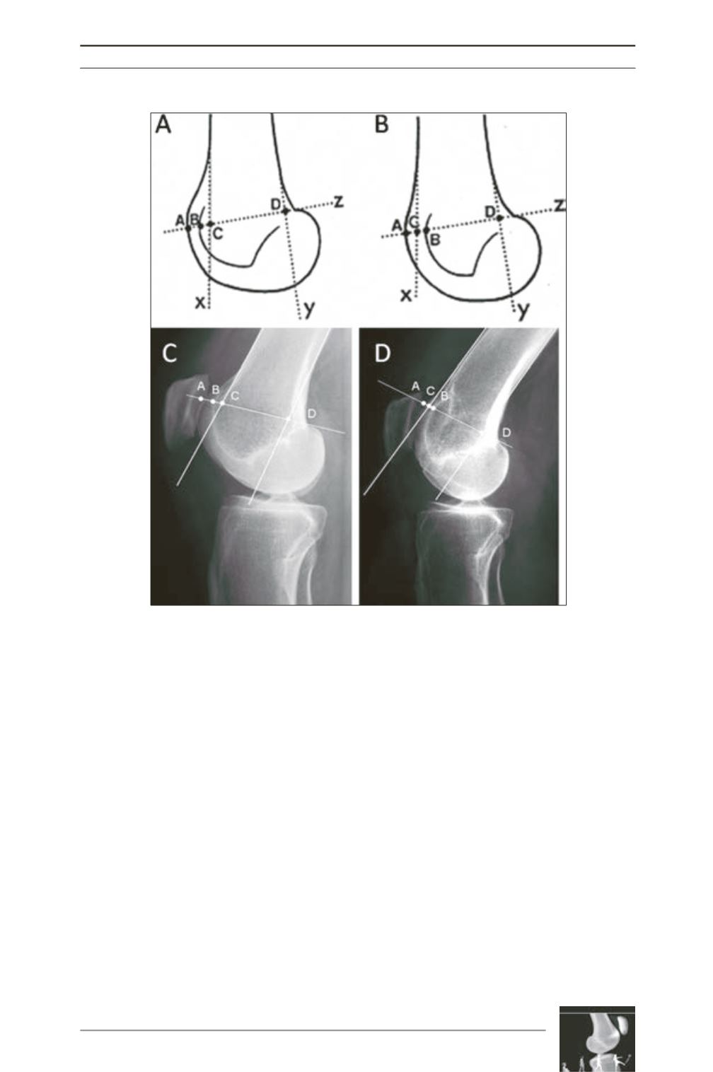 Point “D” is the junction between the posterior cortex and articular cartilage.
